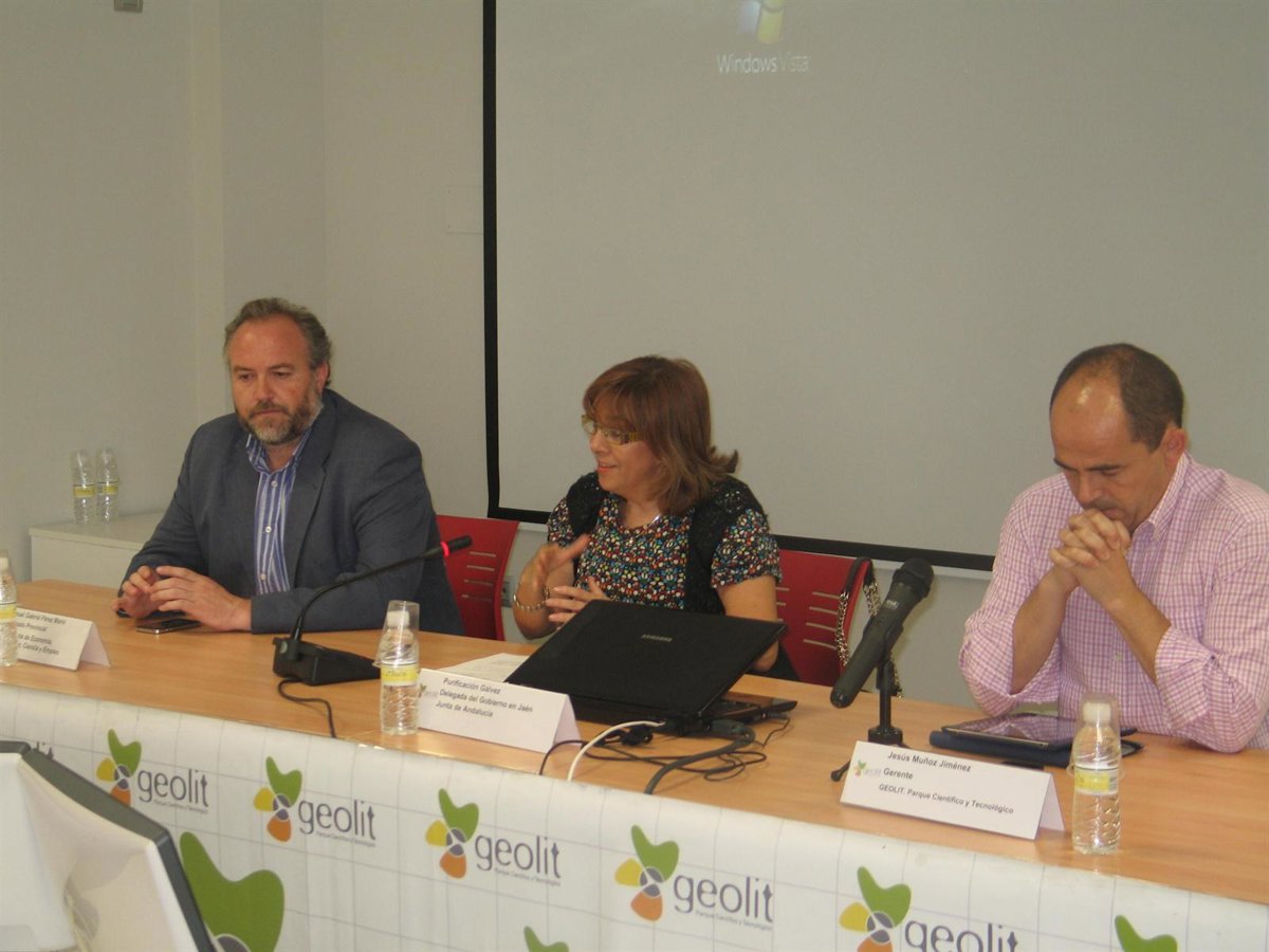 La delegada del Gobierno andaluz en Jaén, Purificación Gálvez, acompañada del delegado provincial de Economía, Innovación y Ciencia, Manuel Gabriel Pérez, ha inaugurado en Geolit una jornada para presentar el Fondo para el Impulso de las Energías Renovables y la Eficiencia Energética, puesto en marcha por la Junta de Andalucía a través de la Agencia de Innovación y Desarrollo (IDEA).