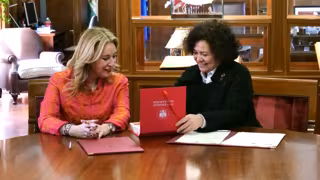 La consejera de Economía, Hacienda y Fondos Europeos, Carolina España, ha firmado con la rectora de la Universidad de Granada, Pilar Aranda, el convenio entre la Junta de Andalucía y la Universidad de Granada a través del cual se le concede a la UGR una subvención de carácter excepcional para la financiación de las obras del edificio de Conservación y Restauración de la Facultad de Bellas Artes de Granada, que se encuentra en la Avenida de Andalucía, número 38.