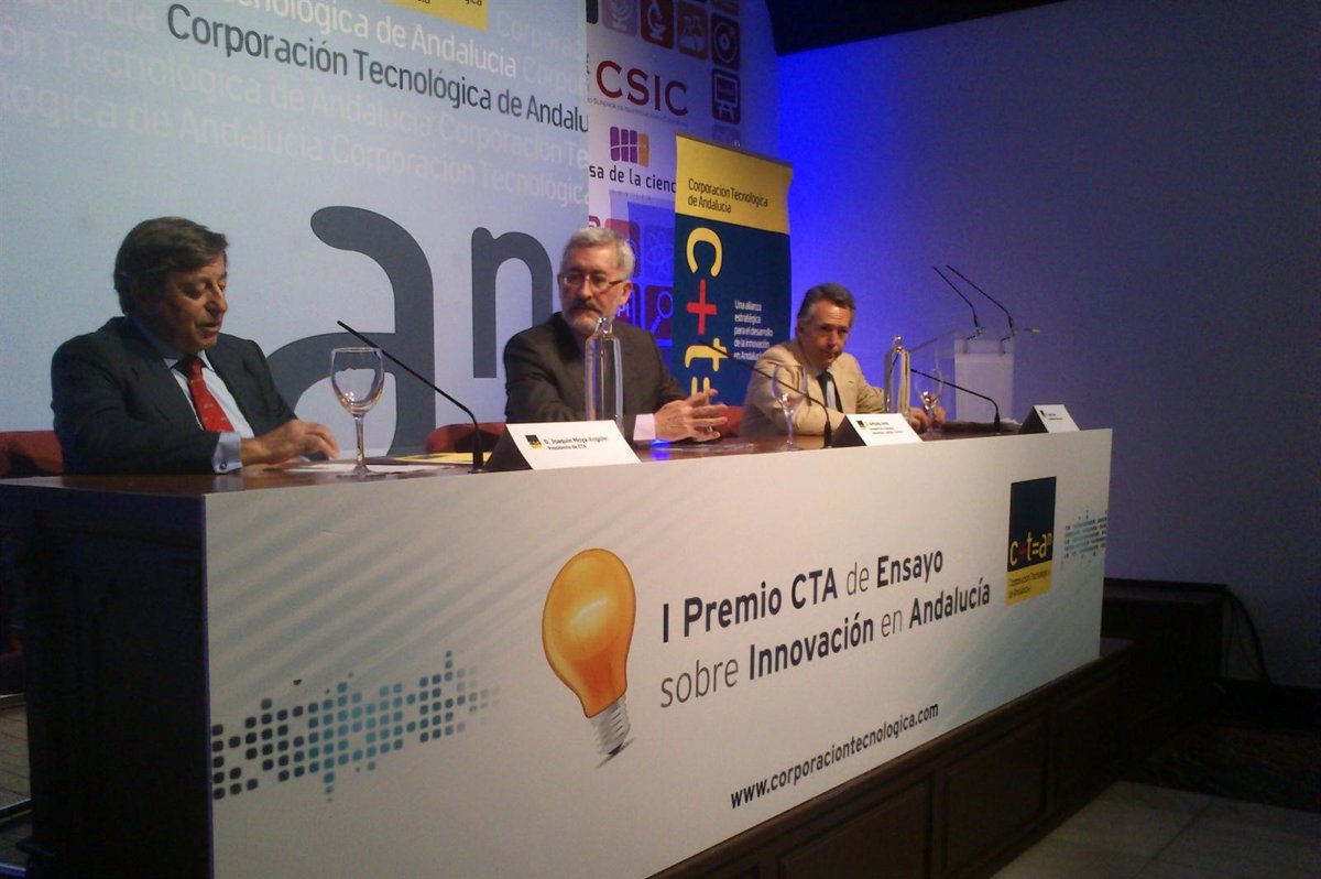 La obra 'Entre dos mundos: la aventura de la innovación y la creación de empresas en Andalucía', de los autores Inés Andújar Nagore, Ana Fernández Zubieta y Manuel Fernández Esquinas, investigadores del Instituto de Estudios Sociales Avanzados de Andalucía (IESA) del CSIC ha sido galardonado este martes con el I Premio de Ensayo CTA sobre innovación en Andalucía, dotado con 6.000 euros además de la publicación del texto ganador, en una ceremonia celebrada en la Casa de la Ciencia de Sevilla (CSIC), en la que han participado el presidente de CTA, Joaquín Moya-Angeler, y el presidente de Grupo Joly, José Joly, como representante de los miembros del jurado.
