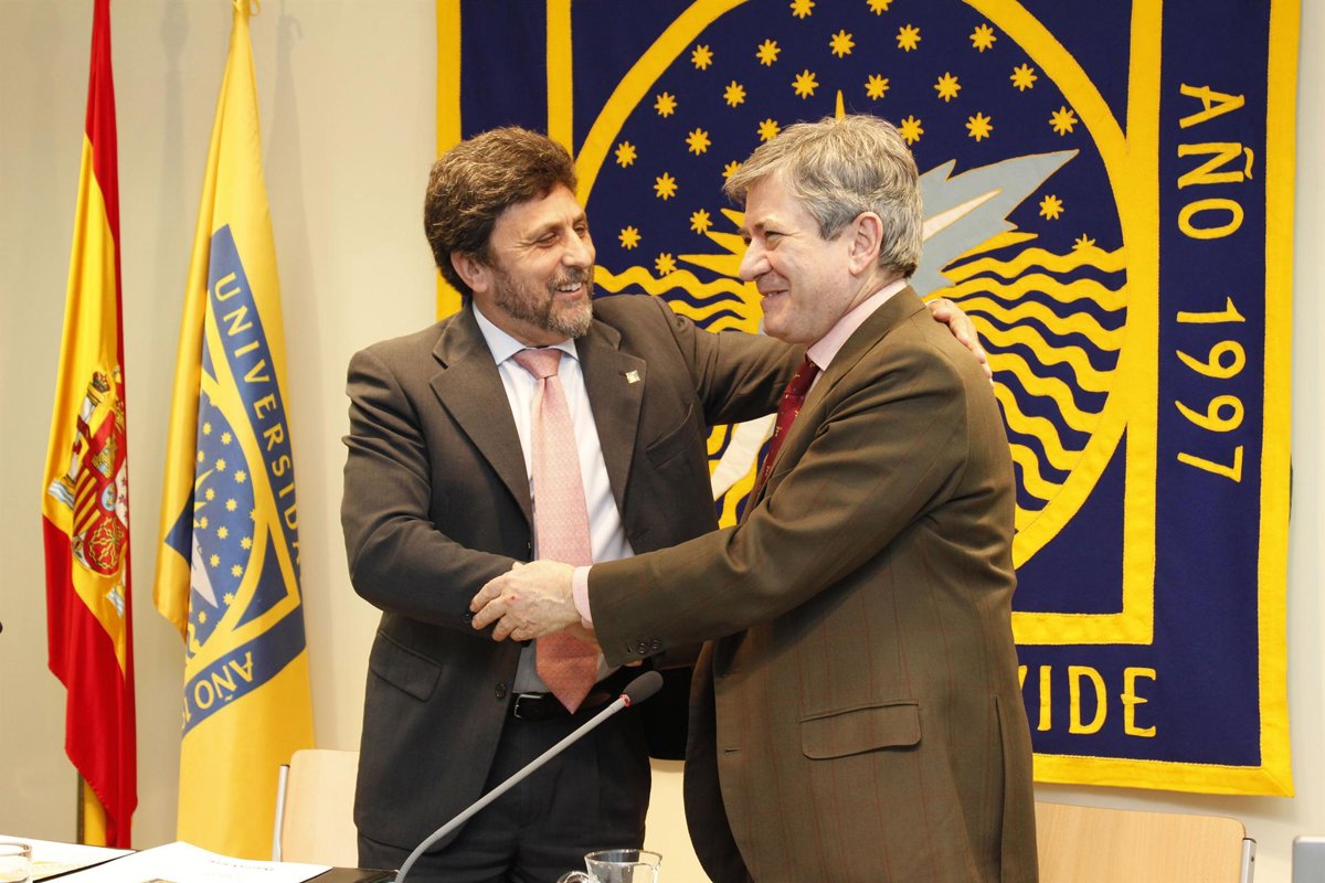 El rector de la Universidad Pablo de Olavide (UPO), Juan Jiménez, ha firmado este lunes un convenio con el presidente de la Fundación Europea para la Sociedad de la Información y la Administración Pública, Enrique Barón Crespo, por el que se promueve la implantación de dispositivos de televisión por Internet (IP) en el campus universitario.