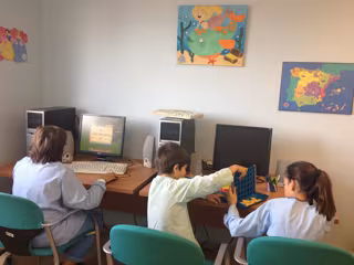 El aula cuenta con recursos informáticos como ordenadores portátiles, conexión a Internet, biblioteca, material didáctico y recreativo, así como una sala de recreo infantil para los más pequeños.