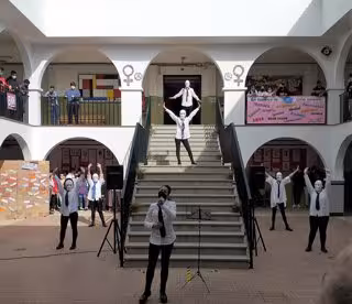 La celebración ha comenzado con una batukada en el patio porticado del centro, a la que han seguido una serie de actuaciones de alumnas que cantaron acompañadas de coreografías. Por último ha tenido lugar la lectura de un manifiesto alusivo a la igualdad entre mujeres y hombres.