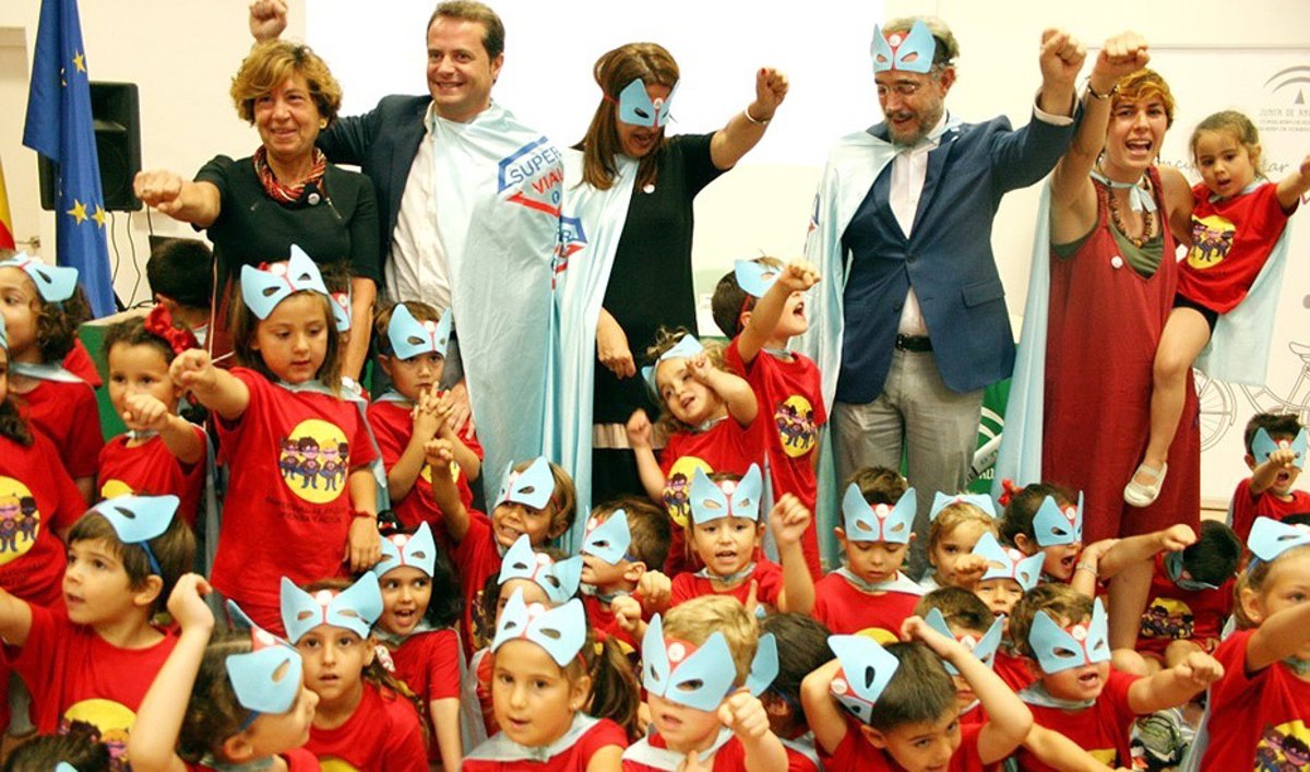 Para participar en este concurso los alumnos tenían que diseñar una campaña de comunicación y concienciación con la que transmitir los valores, actitudes y hábitos que favorezcan el fomento de modos alternativos al coche. Los alumnos de tan sólo cuatro años del centro mairenero de El Almendral han creado el héroe Supervial, dedicado a promocionar la movilidad sostenible con el objetivo de convertir a Mairena del Aljarafe en un referente en esta materia, animando a todos los vecinos a actuar de manera responsable no sólo por el bien de la localidad sino de todo el planeta.