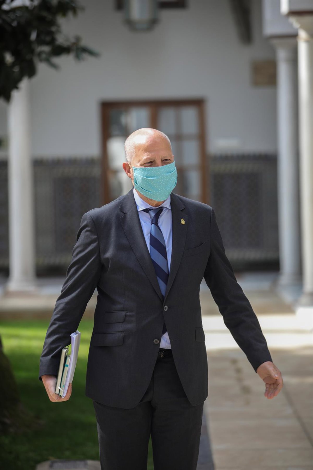 El consejero de Educación y Deporte, Javier Imbroda a su llegada a la sesión presencial de la Diputación Permanente del Parlamento de Andalucía, foto de archivo - María José López - Europa Press - Archivo