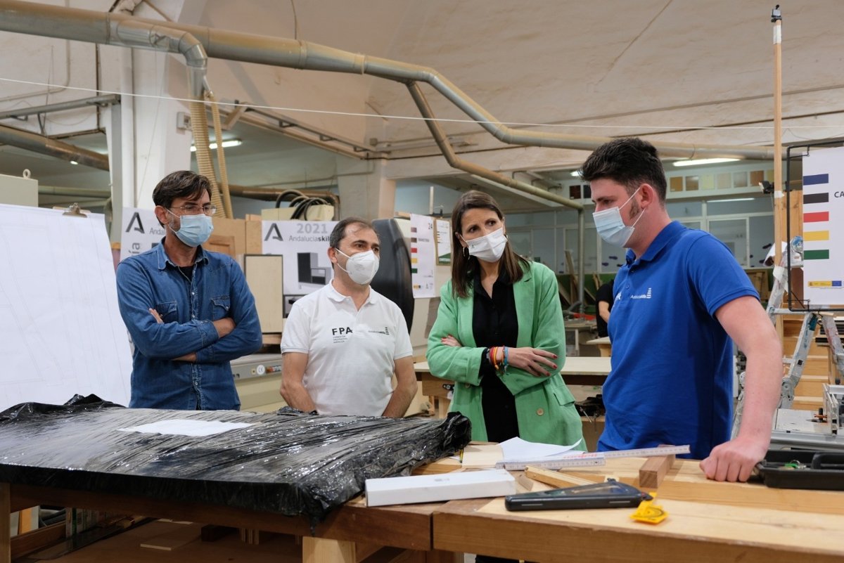 Durante las visitas, la delegada ha mostrado su apoyo al alumnado. Así, en el IES La Rosaleda participan las especialidades de Ebanistería, Carpintería, Electrónica, Tecnología del Automóvil, Soldadura, Fontanería y Calefacción y Refrigeración. Mientras, en el colegio San José compiten las especialidades de Ebanistería, Carpintería, Pintura del Automóvil, Refrigeración y Electricidad.