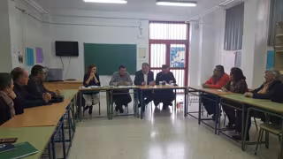 El delegado de la Junta en Huelva, Francisco José Romero, y el delegado territorial de Educación, Vicente Zarza, han mantenido una reunión con representantes de la comunidad educativa del centro para informar sobre las líneas generales del proyecto y la temporalización de las actuaciones actuales y futuras, que permitirán unificar las dos sedes actuales del instituto en un mismo recinto escolar, así como la reforma y adaptación de las instalaciones actuales del centro, que albergarán al alumnado de Secundaria.