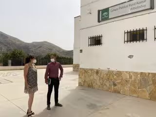 El delegado territorial de Educación y Deporte de la Junta en Almería, Antonio Jiménez, acompañado por la alcaldesa de Alboloduy, Sonia Guil Soriano, ha visitado la sede del Colegio Público Rural Azahar, uno de los cinco centros educativos en los que se han iniciado esta semana obras de climatización pasiva.