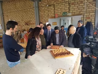 El delegado territorial de Educación de la Junta de Andalucía en Huelva, Vicente Zarza, ha visitado este lunes Gibraleón para conocer el funcionamiento de la unidad educativa de Carpintería, una vez renovado su concierto con la Junta de Andalucía, en el marco del programa de Transición a la Vida Adulta y Laboral de un grupo de alumnos con plurideficiencias de la escuela-hogar 'Cristo Roto'.