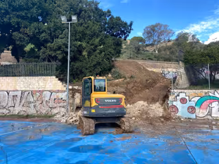 En otra zona del recinto, las lluvias agravaron las patologías del muro de contención de tierras en la zona de las pistas polideportivas, que presenta riesgo de derrumbe a lo largo de 47 metros longitudinales.