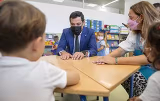El presidente de la Junta, Juanma Moreno, ha destacado este viernes el esfuerzo inversor que el Gobierno andaluz va a realizar este curso con el objetivo de "garantizar" una vuelta a las aulas que sea cien por cien presencial y segura. Un esfuerzo inversor "sin precedentes" en Educación con un total de 7.400 millones de euros, con la incorporación de 7.000 profesionales extra, con 300 millones de euros para cubrir sustituciones, con la entrega de otros 100.000 dispositivos digitales y con una inversión en infraestructuras por valor de 190 millones que incluye 430 proyectos de bioclimatización.