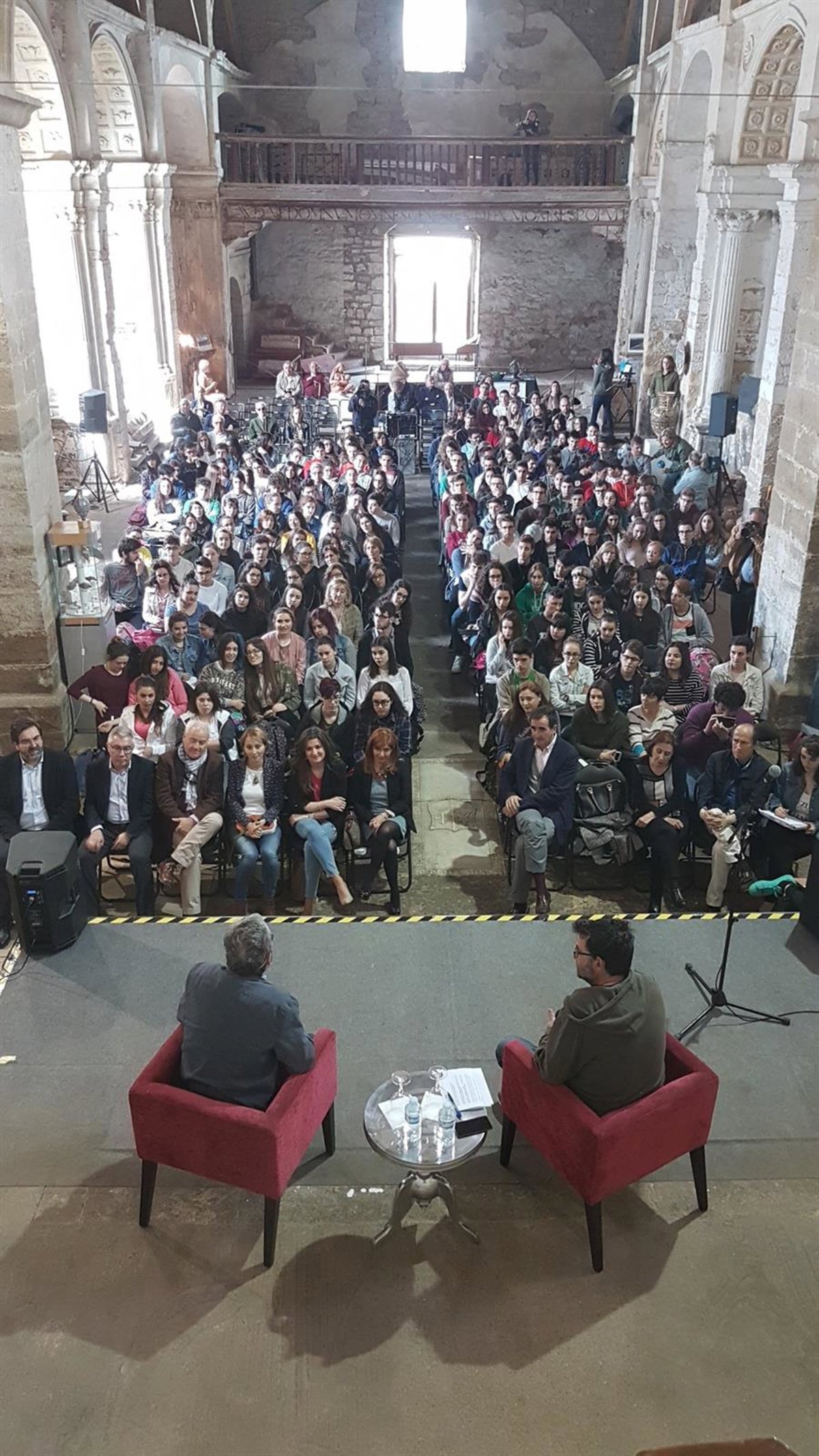 La delegada de Educación, Yolanda Caballero, y la alcaldesa del municipio, Antonia Olivares, han asistido también en la iglesia de San Lorenzo a esta cita con el Premio Príncipe de Asturias de Literatura organizada por el centro asociado de la UNED Andrés de Vandelvira y la Fundación de la Huerta de San Antonio.