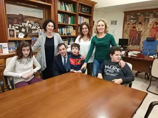 El delegado de Educación de la Junta en Córdoba, Antonio José López, ha recibido la visita de Iván, Adela, David y Mario, niños del aula específica de autismo del colegio público de Infantil y Primaria Eduardo Lucena, que junto con la directora del centro, María Ángeles Quero, y la tutora del aula, María Carmen Palacios, han visitado la Delegación de Educación.