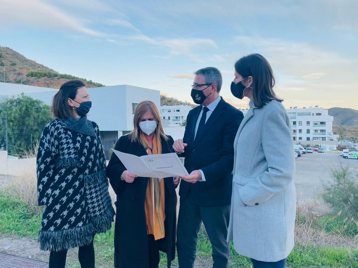 La delegada del Gobierno andaluz en Málaga, Patricia Navarro durante una visita a la zona del futuro IES con la delegada territorial de Educación y Deporte, Mercedes García Paine, y el alcalde de Rincón de la Victoria, Francisco Salado - JUNTA