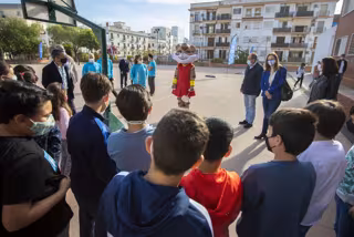 La mascota del Campeonato del Mundo de Bádminton de Huelva, la tigresa 'Onuba', ha visitado este martes el CEIP García Lorca. Una visita en la que ha estado acompañada por la delegada de Educación y Deportes de la Junta de Andalucía, Estela Villalba; la concejala de Participación Ciudadana y Deportes, María Teresa Flores; y el presidente de la Federación Andaluza de Bádminton, Carlos Longo.