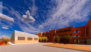 Finalmente, en los espacios exteriores se ubicará un porche cubierto, una pista polideportiva, estacionamiento para docentes, zona ajardinada, zona de juegos, huerto y un área reservada para una futura ampliación.