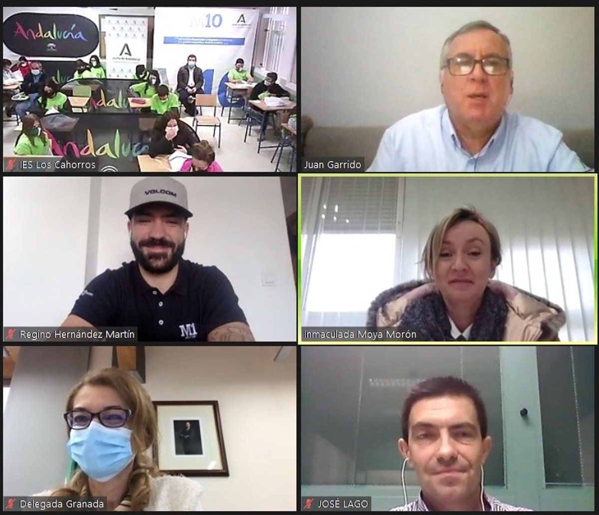 Ha sido en una reunión virtual a la que han asistido la delegada territorial de Educación y Deporte de la Junta en Granada, Ana Berrocal, el jefe de gabinete de Eventos Deportivos y Programas de la Consejería de Educación y Deporte, José Lago, y la directora del instituto Los Cahorros de Monachil, Inmaculada Moya, y en la que han participado 120 alumnos del centro.