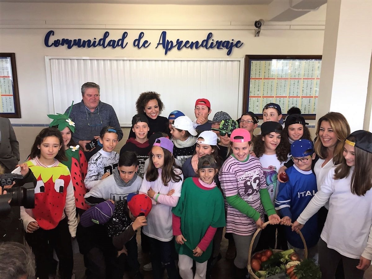 La presidenta de la Junta, Susana Díaz, ha participado en el Colegio de Educación Infantil y Primaria (CEIP) Maestra Caridad Ruiz de la pedanía de La Algaida, en Sanlúcar de Barrameda (Cádiz), de las actividades organizadas por la Ruta de la Fruta del Frutibús, defendiendo así los beneficios de una dieta equilibrada para los menores.