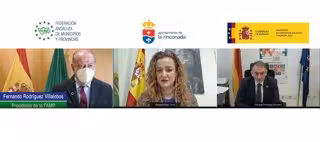 El presidente de la Federación Andaluza de Municipios y Provincias (FAMP) y de la Diputación de Sevilla, Fernando Rodríguez Villalobos; el secretario de Estado para la Agenda 2030, Enrique Santiago, y la primera teniente de alcalde del Ayuntamiento de La Rinconada (Sevilla), Raquel Vega, han inaugurado este jueves, telemáticamente, una jornada de formación continua que ha abordado el papel de las ciudades andaluzas en esta década "definitiva" para alcanzar los Objetivos de Desarrollo Sostenible (ODS).