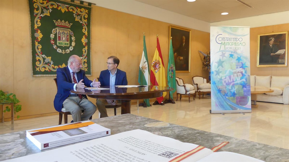 El presidente de la Federación Andaluza de Municipios y Provincias (FAMP) y de la Diputación de Sevilla, Fernando Rodríguez Villalobos, y el presidente de La Asociación Multisectorial de la Jardinera Andaluza (AMJA), Juan Manuel Ruiz Cobos, han rubricado este lunes, en Sevilla, un acuerdo entre ambas instituciones con el objetivo de favorecer un crecimiento más sostenible, integrador e inteligente de los municipios andaluces asumiendo los retos del Pacto Verde Europeo, los Objetivos de Desarrollo Sostenible (ODS), la Agenda Urbana 2030 y los postulados de la Economía Circular.