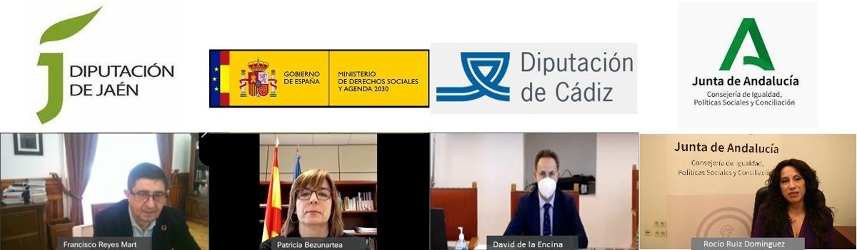 La directora general de Diversidad Familiar y Servicios Sociales del Ministerio de Derechos Sociales y Agenda 2030, Patricia Bezunartea; la consejera de Igualdad, Políticas Sociales y Conciliación de la Junta, Rocío Ruiz; el presidente de la Diputación jiennense, Francisco Reyes; y el vicepresidente de la Comisión de Igualdad, Políticas Sociales y Conciliación de la FAMP y diputado de Bienestar Social de la Diputación de Cádiz, David de la Encina, han inaugurado esta cita.
