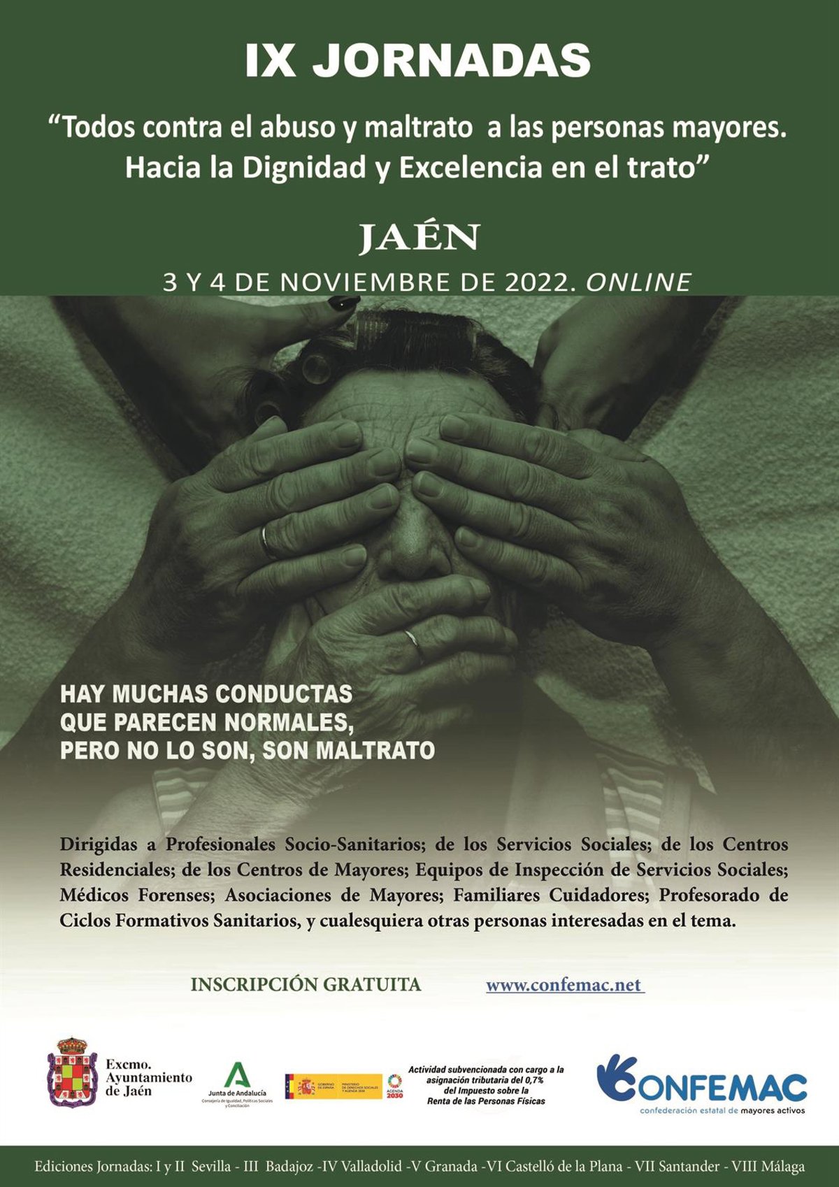 Las jornadas se desarrollarán en formato 'on line' y con "un horario conciliador con la jornada laboral para facilitar a las personas interesadas su participación". En su inauguración está prevista la asistencia de la presidenta de Confemac, Gloria Veiga; el director general de Personas Mayores, Participación Activa y Soledad no deseada, Francisco Javier Serrano; y el alcalde de Jaén, Julio Millán.