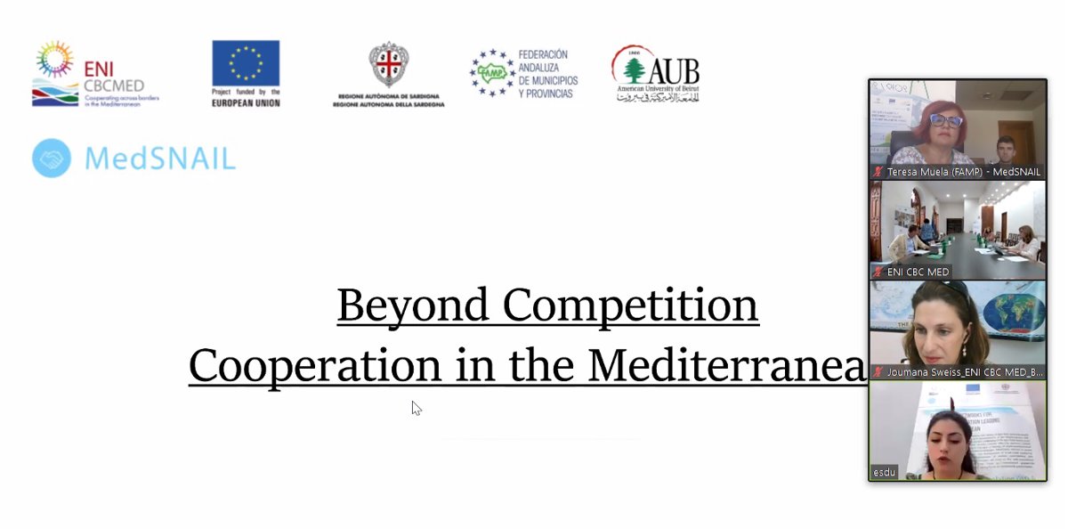 La secretaria general de la Federación Andaluza de Municipios y Provincias (FAMP), Teresa Muela Tudela, ha presentado este miércoles la experiencia del proyecto europeo MedSNAIL 'Redes para la innovación agroalimentaria sostenible en el Mediterráneo', en la jornada online 'La industria agroalimentaria más allá de la competencia: historias de cooperación mediterránea y debate sobre los principales retos del sector'.