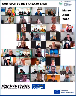 El coordinador de la Secretaría General de la FAMP, José Antonio Garrido, acompañado por los presidentes de las cuatro comisiones de trabajo han compartido con los responsables políticos el estado del arte del proyecto Pacesetters (Programa Horizon Europe) tras haber pasado el umbral de los 18 meses de ejecución, y han podido conocer de primera mano los "aprendizajes y hallazgos" que van emergiendo a raíz de la implementación de este proyecto europeo.