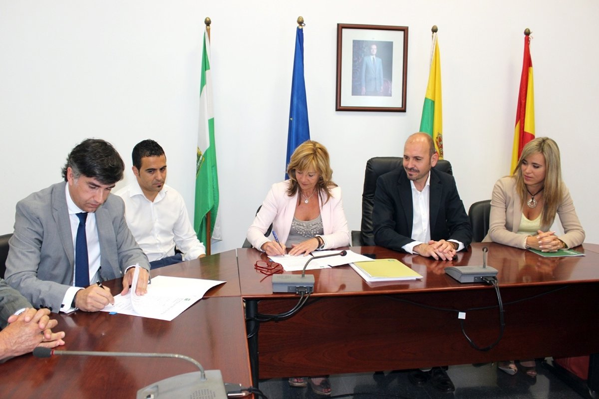 La directora general de Infraestructura y Servicios Educativos de la Consejería de Educación, Aurelia Calzada, y José Antonio Molina, representante de la empresa adjudicataria de las obras del nuevo Instituto de Enseñanza Secundaria (IES) de Cártama (Málaga) han firmado este viernes el contrato para la construcción del centro, que ofrecerá 360 plazas de Educación Secundaria Obligatoria (ESO).