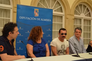 En rueda de prensa, la diputada provincial de Cultura, María Vázquez, junto los concejales de Vera, Juan de la Cruz y Cati Soriano; el mejor doble de Freddie Mercury del momento, el italiano Piero Venery; y el responsable de la empresa promotora, Diego Bravo, han presentado eesta actuación en el que "el público vive la sensación de ver a Queen".