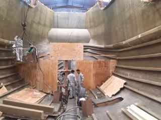 Según un comunicado, tras cinco meses desde el inicio de la obra, ya se ha completado el molde y el laminado del casco de 28,30 metros de eslora y 7,96 metros de manga. A partir de entonces se ha comenzado con la instalación de sus refuerzos longitudinales y los mamparos para completar su estructura. Se han estado instalando a lo largo de su quilla más 10.000 kilogramos de lastre de barras de hierro corrugado --de los 70.000 kilogramos-- y se ha estado iniciando la construcción de las primeros tramos de cubierta.