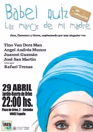 La cantante de jazz Babel Ruiz presentará el próximo viernes su cuarto trabajo discográfico, 'Las manos de mi madre', en el Jardín Huerto de Orive de Córdoba a partir de las 22,00 horas, en el ámbito de la programación musical Cultura en Red y organizado por la Delegación de Cultura del Ayuntamiento de la capital cordobesa.