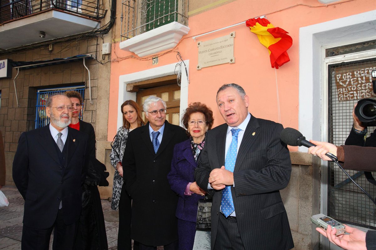Previamente a la presentación de este acto de presentación del catálogo, el presidente de Castilla-La Mancha, el alcalde de Daimiel, José Díaz del Campo y Vicente Carranza y sus familiares han descubierto una placa en la casa natal del ceramófilo, situada en la calle Arenas, donde nació el 14 de noviembre de 1928. La placa ha sido colocada a iniciativa de la Asociación de Daimieleños en Madrid.