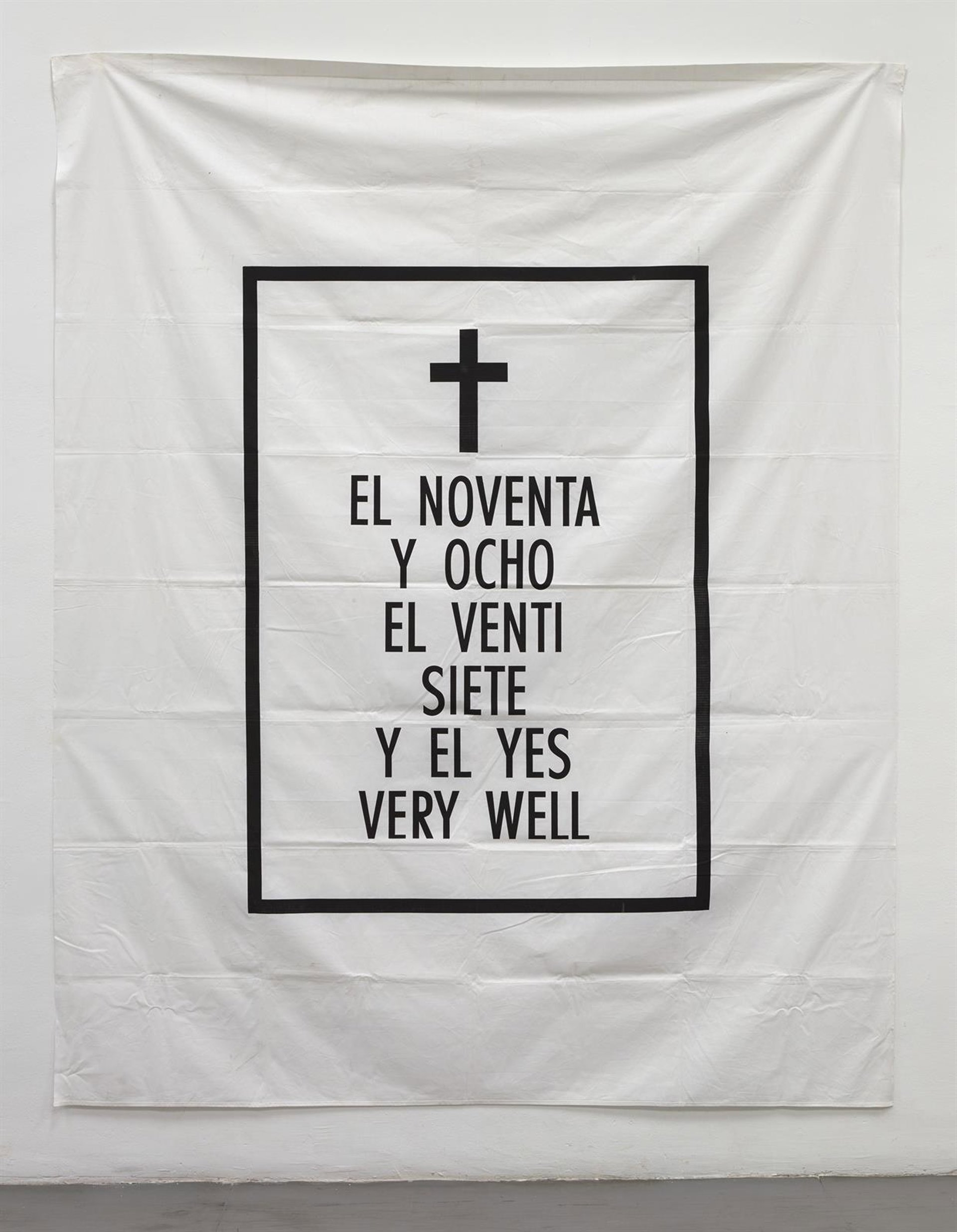 Otro de los aspectos importantes de la muestra que presenta el CAAC son los trabajos que APS realizó sobre el lenguaje y la poética a través de pinturas, instalaciones y publicaciones, como La Sábana Santa cedida por el Museo Reina Sofía, abriendo nuevos horizontes de lectura marcados por la ironía y el sentido del humor.