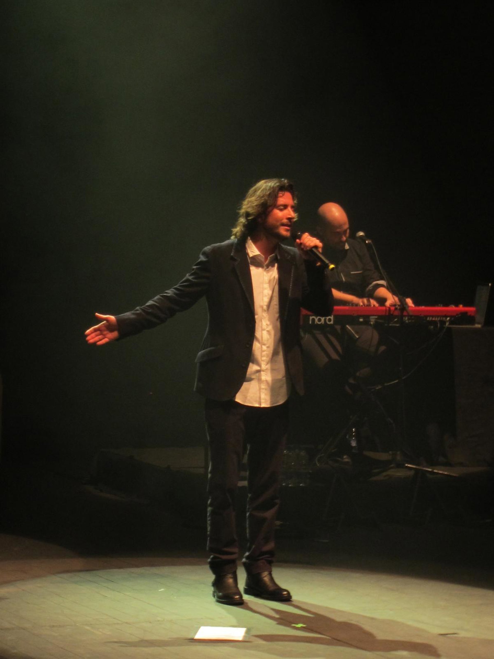 En el concierto, que duró casi dos horas, Carrasco, muy cercano y derrochando simpatía con sus paisanos, comenzó con 'Prefiro estar presente' seguido por otros temas como 'Otoño, Octubre', 'Tienes que echar a volar' o 'Si miras a tu alrededor', entre otros. Deleitó a su público con su voz y también con varios instrumentos como su inseparable guitarra, el piano y hasta una pandereta, que finalmente regaló al público.