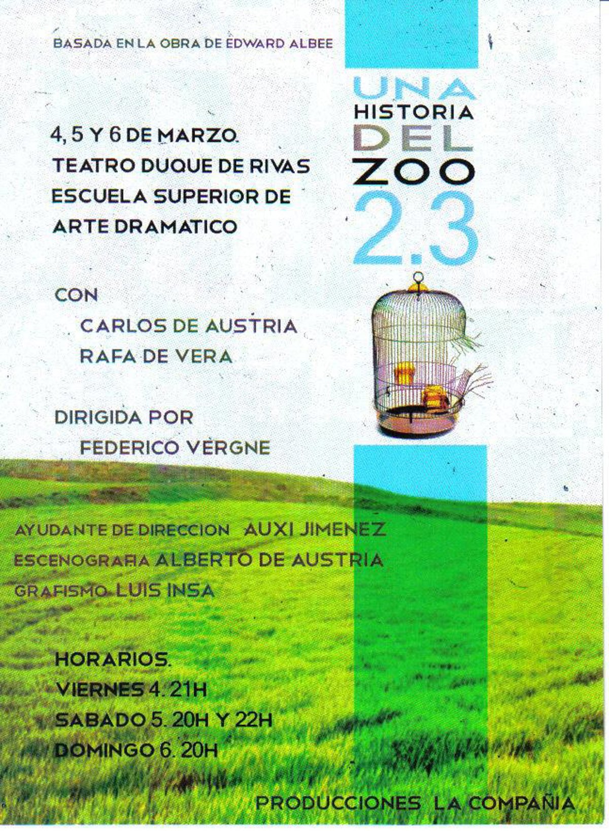 Producciones 'La Compañía' recogió este texto en marzo de 2010 en su versión original, lo tradujo y lo adaptó. Conforme fueron trabajando en él descubrieron que "la creación de los personajes" les llevó a "reescribir partes o a añadirle otras nuevas, para así poder recoger la esencia" de lo que querían transmitir, dando lugar de esta forma a 'Una historia del Zoo 2.3'.