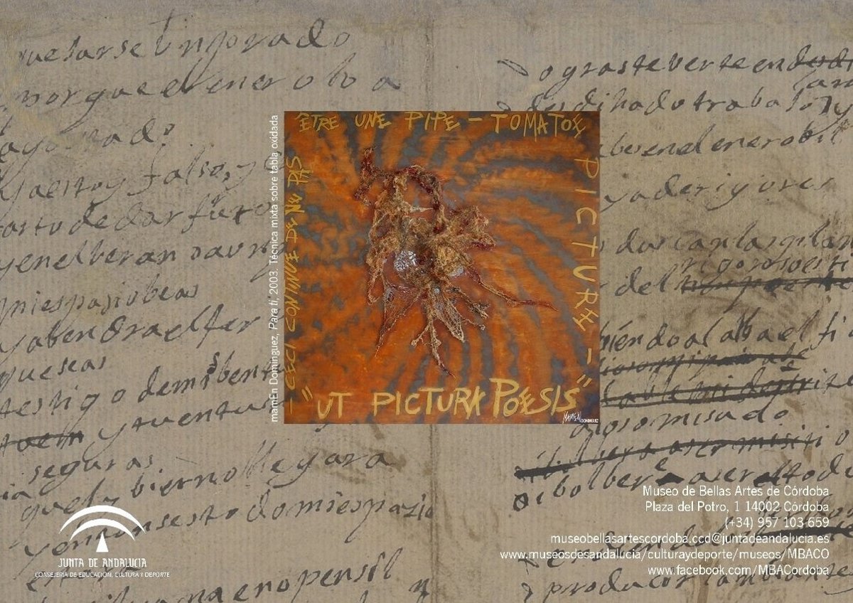 El Museo de Bellas Artes de Córdoba, dependiente de la Consejería de Educación, Cultura y Deporte de la Junta de Andalucía, ha convocado el I Certamen Nacional de Poesía Ilustrada 'Ut pictura poesis' (La pintura es como la poesía), que toma como referencia el equinoccio de primavera y el solsticio de invierno del año 2014, con el objetivo de aunar pintura y poesía en un concurso de ámbito nacional abierto a "poetas ilustradores" o a "ilustradores poetas".