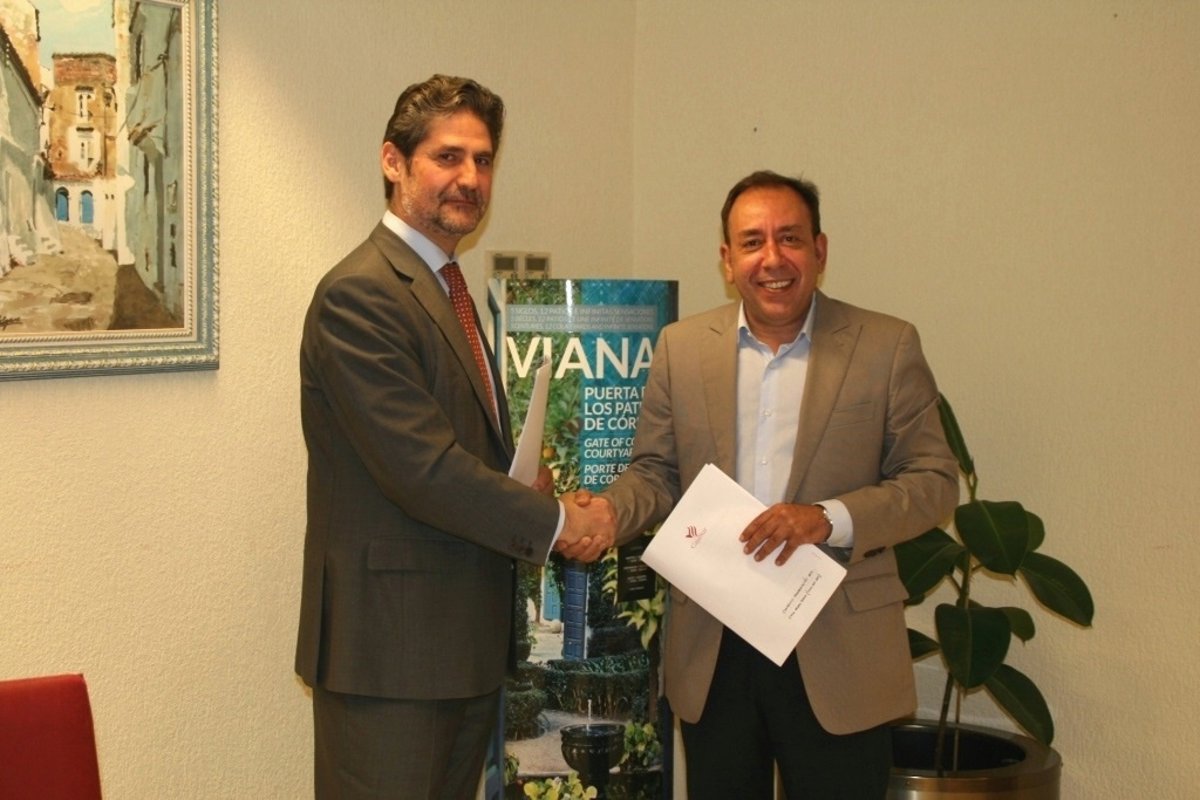 El director de la Fundación CajaSur, Ángel Cañadilla, y el concejal de Cultura del Ayuntamiento de Villa del Río (Córdoba), Jesús Morales, han firmado este martes un convenio por el que la entidad financiera cede la casa del pintor Pedro Bueno. Asimismo, la Fundación CajaSur aporta la cantidad de 20.000 euros para las primeras obras de rehabilitación del citado espacio, que tendrá un uso cultural.