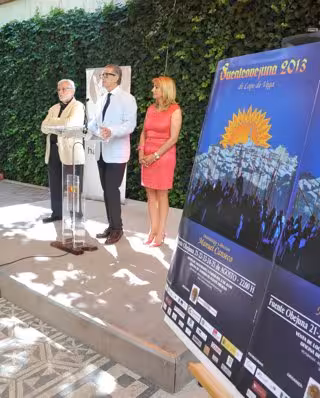 El delegado de Cultura de la Diputación de Córdoba, Antonio Pineda, y la alcaldesa de Fuente Obejuna, Isabel Cabezas, han dado a conocer este viernes el programa de las próximas representaciones, de la 'Fuenteovejuna' de Lope de Vega, que protagonizarán los propios mellarienses, en la Plaza Lope de Vega de su municipio, entre el 21 y el 25 del próximo mes de agosto.