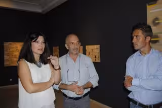 La exposición de pinturas 'Infinito Concreto. Áreas de conflicto', de Joan Soler, podrá visitarse en el Museo de Huelva desde este jueves hasta el 9 de octubre. La delegada territorial de Cultura, Turismo y Deporte, Carmen Solana, y el artista, junto al director del centro museístico, Pablo Guisande, han participado este jueves en la inauguración de la muestra, que exhibe un conjunto de 24 obras pictóricas de sugerente relato conceptual.