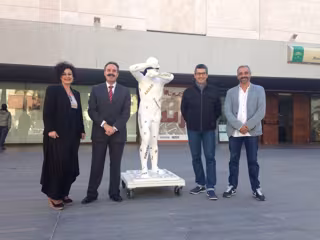 El delegado territorial de Cultura, Turismo y Deporte de la Junta en Almería, Alfredo Valdivia, ha presentado este viernes en la entrada del Museo Arqueológico la muestra "efímera" '1,2,3, el que no se haya escondido...' compuesta por una serie de esculturas de yeso, obra de Javier Cazorla, que quedarán expuestas hasta su desaparición a causa de la interacción humana y ambiental.