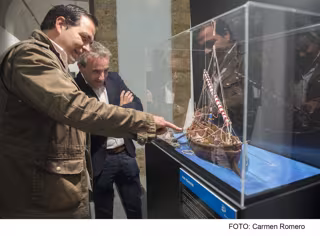 El vicepresidente de la Fundación Provincial de Cultura, Salvador Puerto, y el secretario de la Fundación Educa, Jorge Peláez, han abierto esta tarde en la Diputación de Cádiz la exposición 'Plastihistoria de la Humanidad', una muestra que tiene un marcado carácter didáctico para todo tipo de públicos.