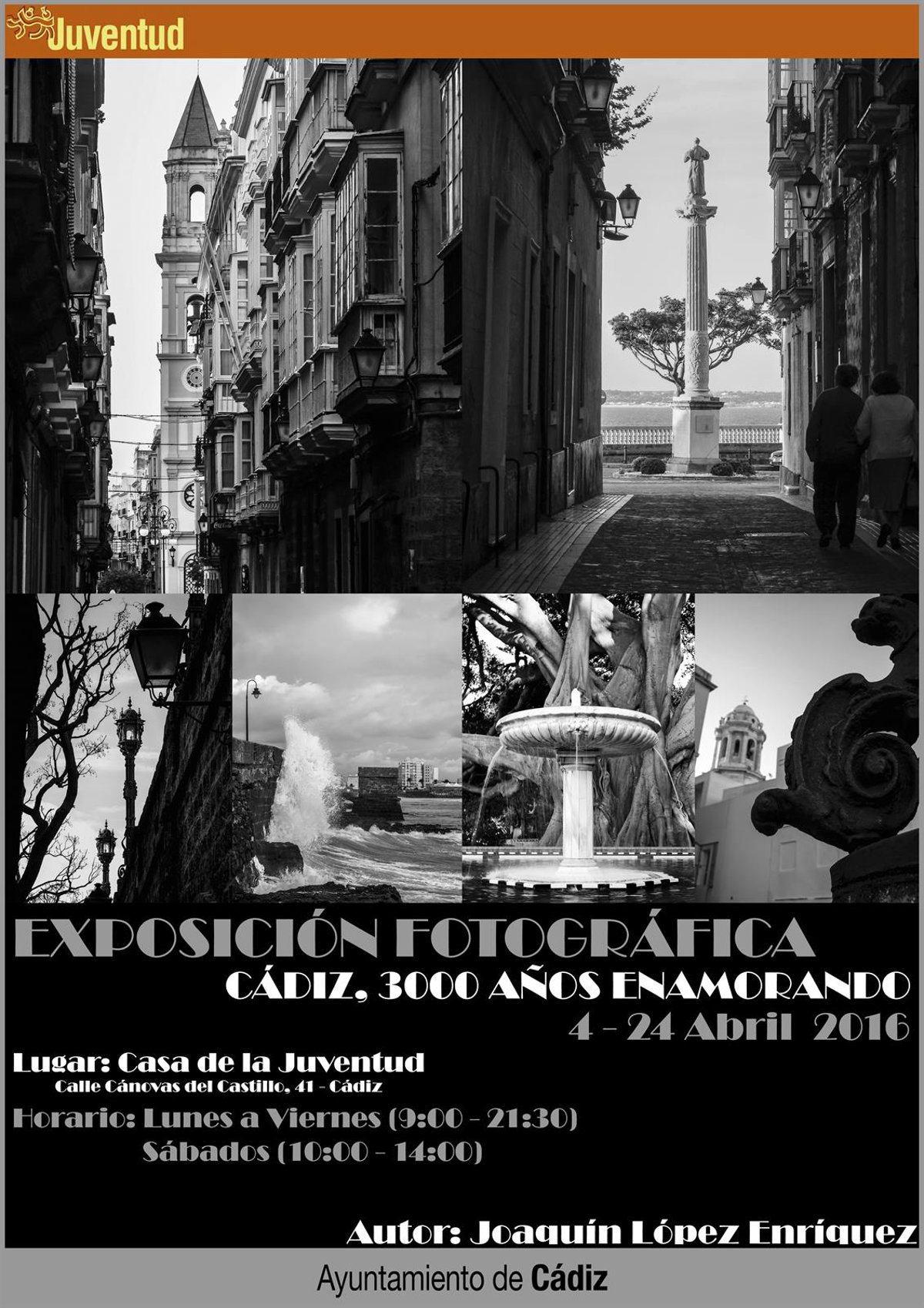 La muestra fotográfica 'Cádiz, 3000 años enamorado', de Joaquín López Enríquez, se expone desde este lunes en la Casa de la Juventud de Cádiz, una exhibición que se enmarca dentro del programa 'Jovenarte', organizado por la Delegación de Juventud para intentar ofrecer a la juventud creadora un lugar donde exponer sus obras.