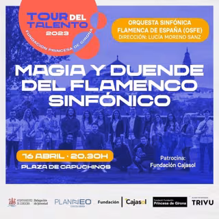 La Delegación de Juventud del Ayuntamiento de Córdoba y la Fundación Cajasol programan un concierto de la Orquesta Sinfónica Flamenca formada por jóvenes músicos de Córdoba el domingo 16 de abril a las 20,30 horas en la Plaza de Capuchinos, con entrada libre hasta cubrir el aforo de la plaza.