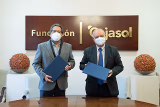 Los presidentes del Consejo Audiovisual de Andalucía (CAA), Antonio Checa, y de la Fundación Cajasol, Antonio Pulido, han suscrito un nuevo convenio de colaboración para la celebración de los VII Premios Andaluces 'El Audiovisual en la Escuela'.
