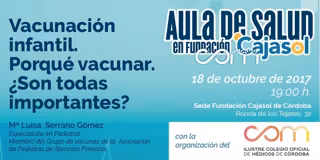 La Fundación Cajasol y el Ilustre Colegio Oficial de Médicos de Córdoba ofrecen este miércoles, a partir de las 19,00 horas en la sede de la propia fundación, la segunda conferencia del ciclo 'Aula de Salud', que esta vez lleva como título 'Vacunación infantil. Porqué vacunar. ¿Son todas importantes?'