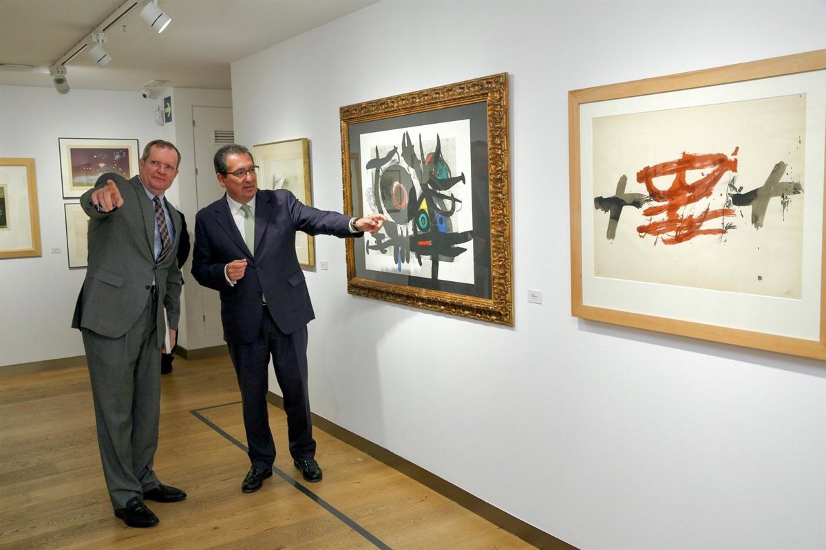 El presidente de la Fundación Cajasol, Antonio Pulido, y el comisario de la muestra, Juan Fernández Lacomba, han inaugurado la exposición 'Obra gráfica en la Colección de la Fundación Cajasol', que permanecerá abierta al público hasta el próximo 30 de noviembre.