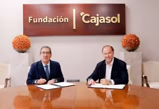 El presidente de la Fundación Cajasol, Antonio Pulido, y el presidente de la Federación Onubense de Empresarios, José Luis García-Palacios Álvarez, han firmado un convenio de colaboración con el objetivo de convocar la XVIII edición de los Premios del Año de Huelva. Estos galardones tienen como finalidad reconocer a aquellas empresas e iniciativas empresariales más destacadas por su contribución al desarrollo socioeconómico de la provincia de Huelva en diferentes actividades y campos de la actividad empresarial.