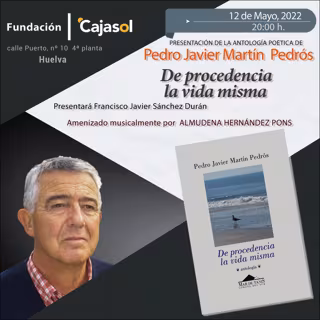 La Fundación Cajasol en Huelva acoge este jueves, 12 de mayor la presentación del nuevo libro de Pedro Javier Martín Pedrós, una antología que lleva por título 'De procedencia la vida misma', conformada por una selección de las distintas obras que el autor tiene publicadas.