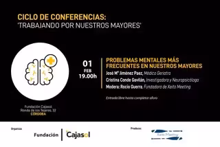 Según ha informado ya la Fundación Cajasol, la primera conferencia, programada para este jueves 1 de febrero, se centrará en los 'Problemas mentales más frecuentes en nuestros mayores'. La segunda, prevista para el 7 de febrero, abordará la 'Enfermedad de Alzheimer: Un desafío sanitario integral'.