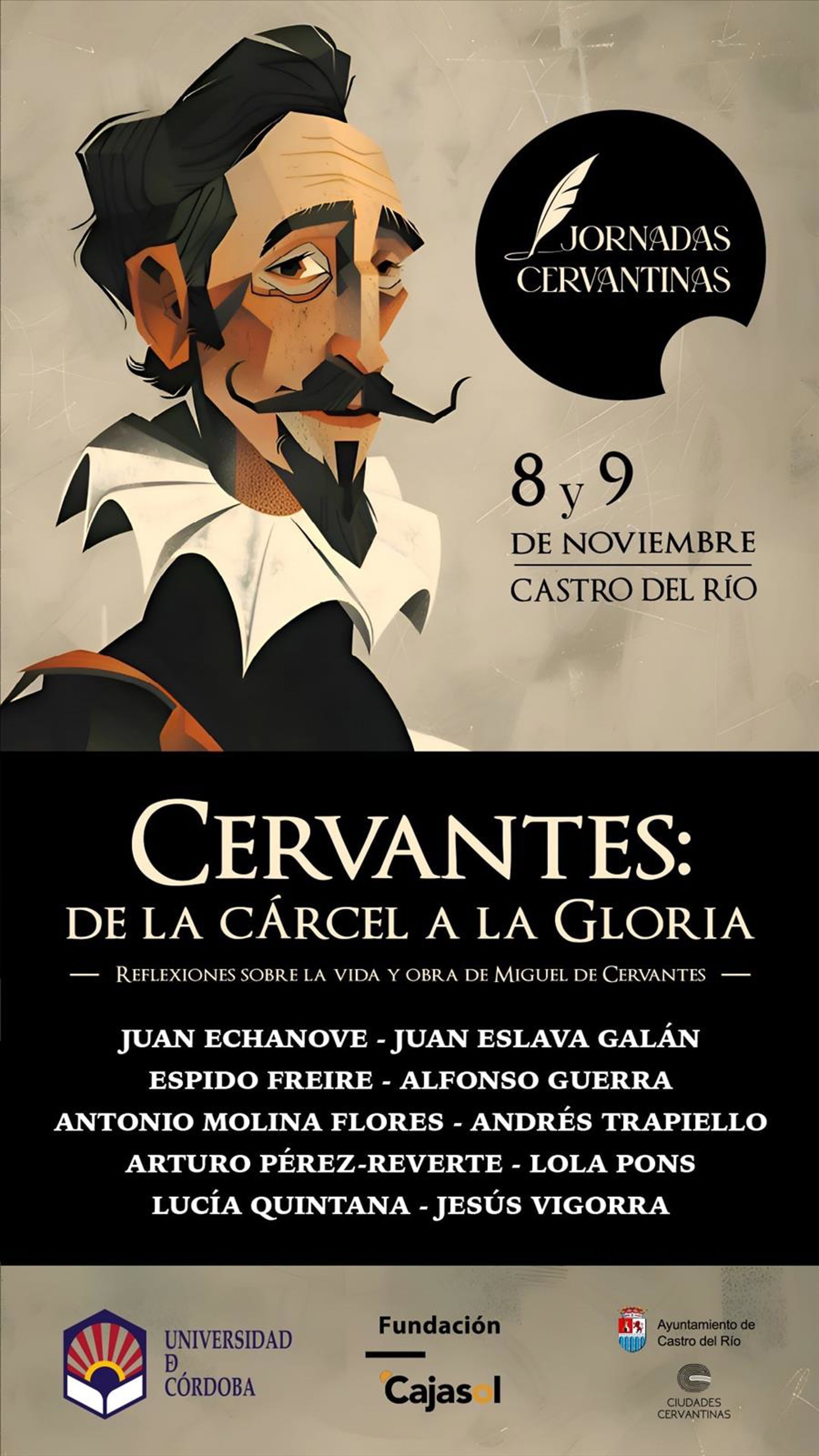 El acto inaugural tiene lugar este viernes 8 de noviembre, a las 19,00 horas, con la intervención del presidente de la Fundación Cajasol, Antonio Pulido; del alcalde de Castro del Río, Julio Criado, y del rector de la UCO, Manuel Torralbo; correspondiendo la conferencia inaugural a Arturo Pérez-Reverte, quien disertará sobre 'El soldado Cervantes', dando paso a un posterior coloquio, moderado por Jesús Vigorra y con la participación de Juan Eslava Galán, bajo el título de 'Las Cervantas, mujeres de aquel tiempo'.